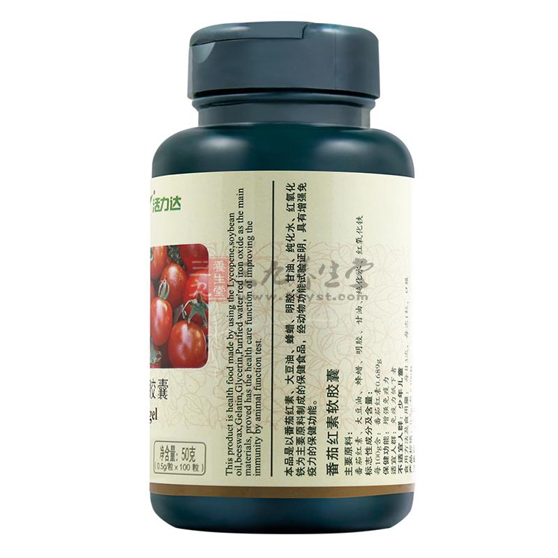 本品是以番茄红素、大豆油、蜂蜡、明胶、甘油、纯化水、红氧化铁为主要原料制成的保健食品,经动物功能试验证明,具有增强免疫力的保健功能。