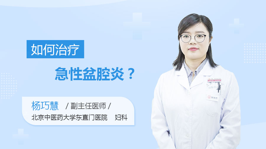 杨巧慧:急性盆腔炎治疗最主要是药物治疗,主要是抗生素合理、规范使用,属于妇科所有疾病中特别容易治疗不足的疾病,一旦诊断就马上开始用药,很大程度减轻慢性盆腔炎、盆腔炎性疾病后遗症,另外要个体化,要足量、规范用药。